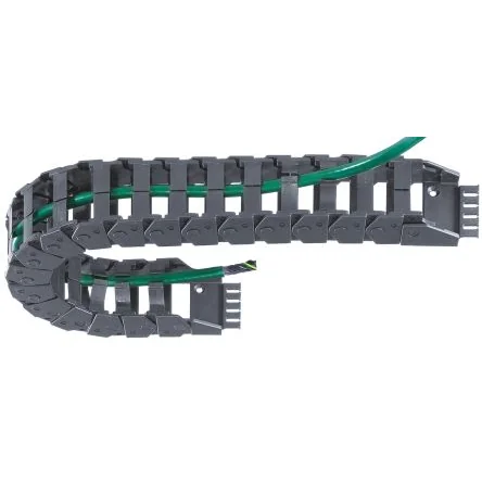 Energy Chain® - Easy Chain®. Fast cable accessibility without opening and closing lids Cables and hoses can be inserted directly into the chain through a split retaining crossbar along the outer radius of the chain Ideal for short-cycle low speed applications Torsional movement permitted Smooth running Fire-resistant to UL94-V2 Chain supplied in 1m lengths. Mounting brackets to be ordered separately