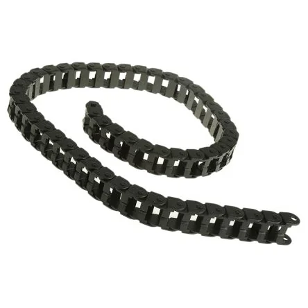 Energy Chain® - Easy Chain®. Fast cable accessibility without opening and closing lids Cables and hoses can be inserted directly into the chain through a split retaining crossbar along the outer radius of the chain Ideal for short-cycle low speed applications Torsional movement permitted Smooth running Fire-resistant to UL94-V2 Chain supplied in 1m lengths. Mounting brackets to be ordered separately
