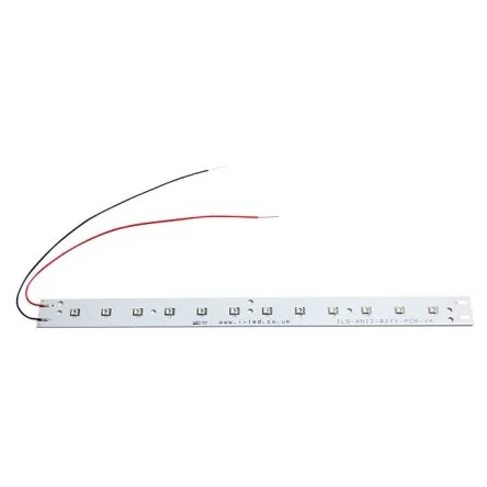 The Intelligent LED SolutionsViolet Linear Strip is available in 2 power output types, low and mid power. The OSLON UV 3636 is a robust package built on a ceramic substrate, coated in gold and has a quartz glass cover. It has been designed for multiple applications including disinfection, purification, treatment and sensing. This strip is compact, powerful LED light source built on aluminium substrates for optimal thermal management.Available with 200mm wires Mounting holes using M3 screws allows easy installation Violet linear strips can be linked together to produce longer chains Forward Current per strip is 600mA Reverse voltage is 15V Temperature range between 40°C and 60°C