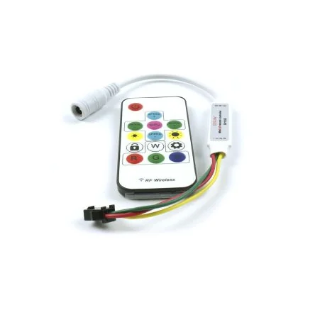 Intelligent RGB & RGBW Mini-RF Controller The ILPA-DRIVER-SP103E-0x has been designed to work seamlessly with all of our Intelligent LED Pixel products. Built in industry standard connector allows for simple plug and play capabilities. An external power supply is required to power the controller and LEDs. The controller comes pre-paired with its remote control, and communications are over low power RF. Technical Features ILPA-DRIVER-SP103E-01 - RGB 5-24V ILPA-DRIVER-SP103E-02 - RGBW 5V only Works with almost all types of 1 and 2 wire LED driver ICs 300 built-in routines Can control up to 2048 pixels Easily adjust brightness Maximum working distance of 10 meters User routine saving function Applications Task Lighting Back Lighting Desk Lighting Garage Lighting Accent Lighting Under Cabinet Lighting Bar Lighting Refrigeration Industrial Applications Photography