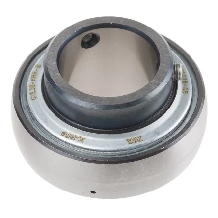 Radial Insert Ball Bearings with Inner Ring. INA from Schaeffler radial insert ball bearings have the inner ring located on the shaft with two grub screws offset by 120°. This location method is suitable for bearing arrangements with a constant direction of rotation or, under low speed and load, for an alternating direction of rotation. The grub screws are self-retaining and have a fine pitch thread with cup point for secure location of the bearings. The GSH series bearings have an adapter sleeve and lock nut providing concentric, force locking location of the inner ring on the shaft. The result is higher speeds and quieter running than other radial bearings. The R seal is two zinc-coated sheet steel washers extended outwards and angled downwards with intermediate NBR part and radially preloaded seal lip. Better protection against mechanical damage. Substantial grease reservoir due to the space between the extended and angled sheet steel washers. Used in radial insert ball bearings with inner ring extended on both sides. The RSR seal is single-piece, zinc-coated sheet steel washer with moulded, radially preloaded NBR seal lip. Used in radial insert ball bearings with integral adapter sleeve. Features and Benefits. • Lower operating costs. • Reduced maintenance due to improved lubrication. • Lower heat generation. • Less noise. • Shaft diameters from 12mm to 90 mm (GYE.KRR-B). • Shaft diameters from 20 mm to 50 mm (GSH.-2RSR-B). • Adapter sleeve (GSH.-2RSR-B series). Suffixes. KRR - Lip seals on both sides (R type seal). B - Bearing with special outer ring. 2RSR - Lip seals on both sides (vulcanised)