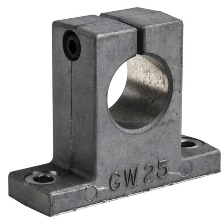 Shaft support blocks are used to support shafts and locate the ends of the shaft. They are suitable for all the solid and hollow shafts in this catalogue. They are made from either an aluminium alloy or pressure diecast zinc. Series GWA is identical in design to series GW but is suitable for larger fixing screws. Depending on the series, the shaft support blocks have through holes or threaded holes.