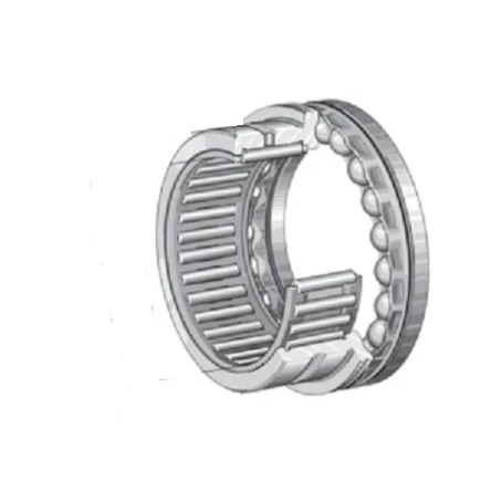 These series comprise radial needle roller bearings and a rolling bearing component capable of supporting axial loads. They can support high radial forces as well as axial forces in one direction, while NKIB can support axial forces from both directions, and are used as locating or semi-locating bearings.Needle roller/axial deep groove ball bearings Lubrication Needle roller/ axial cylindrical roller bearings Lubrication Needle roller/ angular contact ball bearings For alternating axial forces Lubrication Operating temperature Cages Suffixes