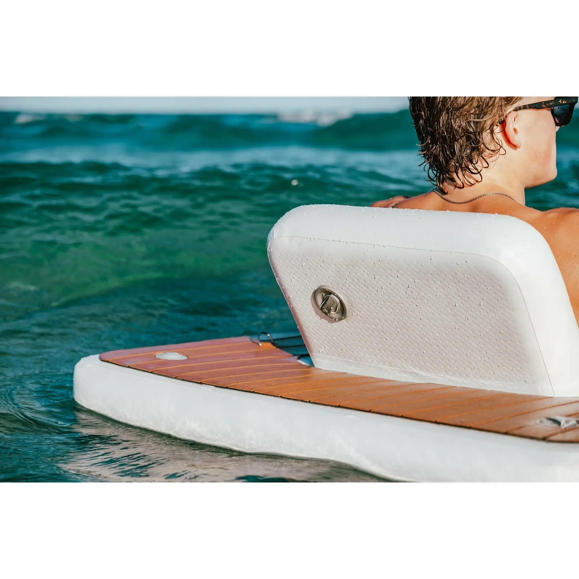 The perfect addition to your beach set up, or simply just hanging out behind the boat. Inflatable sun chair with teak foam surface.