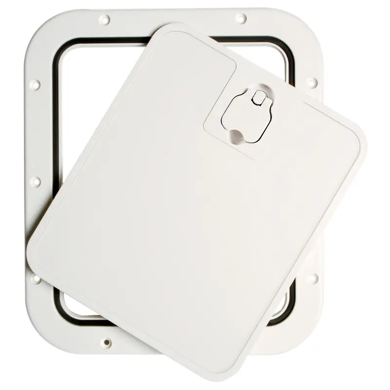 Durable white inspection hatch with a removable lid for easy access and installation.