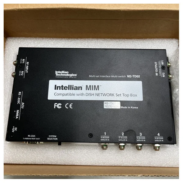 Intellian ACU M2-TD02 Multi Satellite Interface Switch: seamless satellite TV at sea The Intellian ACU M2-TD02 Multi Satellite Interface Switch (MIM) is an innovative solution for Dish Network and Bell TV subscribers at sea. This compact and user-friendly switch automates the necessary switching between the satellites of the TV provider, allowing you to seamlessly enjoy your favourite HD programming without manual configuration. Features: Automatic satellite switching: The MIM automatically detects the selected channel and seamlessly switches to the correct satellite. You can easily change channels with your remote control without needing to adjust settings on the ACU. Support for multiple satellites: The MIM supports up to three satellites (110°W, 119°W, and 129°W for Dish Network; 61.5°W, 110°W, and 119°W for Bell TV). Support for multiple receivers: The MIM can connect up to four receivers, so you can enjoy satellite TV in every cabin of your boat. Easy installation: The MIM is easy to install and configure, even for users without technical knowledge. Specifications: Model: Intellian ACU M2-TD02 Compatibility: Dish Network, Bell TV Supported satellites: Dish Network: 110°W, 119°W, 129°W Bell TV: 61.5°W, 110°W, 119°W Number of receivers: Up to 4 Dimensions: 229 x 140 x 44 mm (W x H x D) Weight: 1.8 kg The Intellian ACU M2-TD02 Multi Satellite Interface Switch is the perfect solution for Dish Network and Bell TV subscribers who want to enjoy seamless satellite TV at sea. The easy installation, automatic satellite switching, and support for multiple receivers make the MIM an essential accessory for your maritime entertainment.