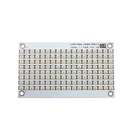 The Intelligent LED Pixel (ILP) range of products are based around the industry standard SK6812 LED driver IC. Each of the RGB LEDs has one of these tiny devices built in, enabling you to drive the whole 18x8 LED tile with just 3 wires and having individual control over each and every one of the LEDs. Each LED can be set to any 8-bit RGB combination giving 24-bit colour depth. The LEDs are controlled by internal drivers that are chained together on the panel so there is no complicated wiring required. These ILP rigid tiles have solder pads for easy linking of multiple devices.Panel size: 100.5mm x 58.5mm x 4mm LED Pitch: 6mm Working Voltage: 5V DC constant voltage Full control over each LED with serial data Beam Angle: 120 Degrees Ability to link multiple tiles Applications LED Advertising Screens Point of Sale Back Lighting Accent Lighting Bar Lighting Industrial Applications Photography