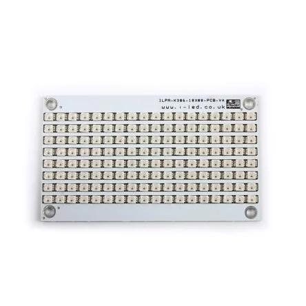 The Intelligent LED Pixel (ILP) range of products are based around the industry standard SK6812 LED driver IC. Each of the RGB LEDs has one of these tiny devices built in, enabling you to drive the whole 8x8 LED tile with just 3 wires and having individual control over each and every one of the LEDs. Each LED can be set to any 8-bit RGB combination giving 24-bit colour depth. The LEDs are controlled by internal drivers that are chained together on the panel so there is no complicated wiring required. These ILP rigid tiles have solder pads for easy linking of multiple devices.Panel size: 55mm x 55mm x 4mm LED Pitch: 6mm Working Voltage: 5V DC Constant voltage Full control over each LED with serial data Beam Angle: 120 Degrees Ability to link multiple tiles Applications LED Advertising Screens Point of Sale Back Lighting Accent Lighting Bar Lighting Industrial Applications Photography