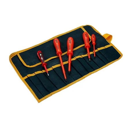 This 5-piece insulated flat screwdriver set ensures safety and efficiency for electrical tasks.