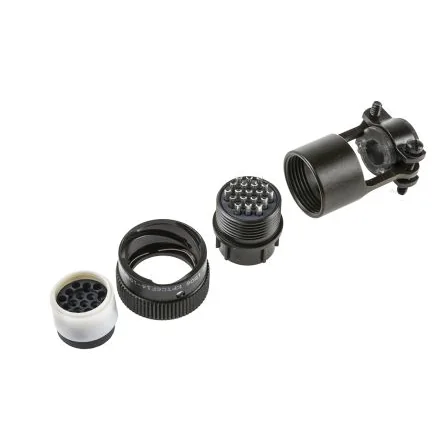 Reliable miniature circular connector plug with 19 contacts for secure cable mounting.