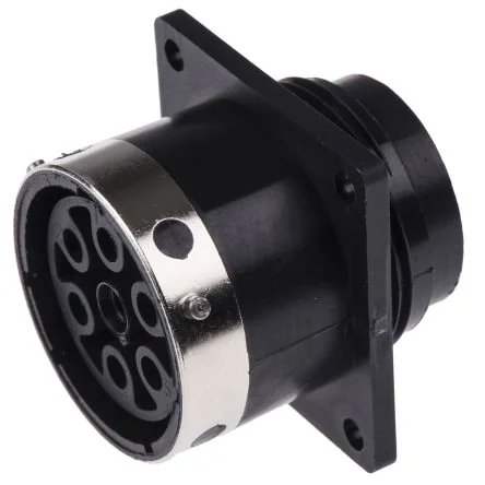 Panel Shells. From ITT Cannon, a selection of panel mount receptacles from the Trident Ringlock series. The rugged threaded connectors are ideal for industrial, transportation and process control applications. Featuring a metal bayonet coupling mechanism, the connectors can be mated and unmated with a single rotation of the coupling nut. The Ringlock series of crimp connectors accept both two-piece T2P and three-piece T3P crimp contacts and are easily assembled on site and in the field. Contacts are fully interchangeable and are easily removed if damaged, supporting rapid repair and eliminating valuable downtime. Ultra-reliable and delivering outstanding performance Trident Ringlock connectors are perfect for harsh environments and engineering applications that demand an uncompromising connection solution. Panel receptacles accept both male and female contacts. Standard panel shells that accept female (socket) contacts mate with cable mount connectors with male (pin) contacts Reverse panel shells that accept male (pin) contacts mate with cable mount connectors with female (socket) contacts. Features and Benefits. • IP65 ingress rating when mated • Black nylon UL94 V-0 shell • A positive bayonet locking system • Shell to shell keying • Highly resistant to thermal and physical shock • Wide temperature range -55° C to + 105° C. Applications. The Ringlock series of circular connectors are intended for use in industrial and automation applications. Highly resistant to vibration and shock, the rugged power connectors are perfect for harsh environments. Some of the most common are. • Industrial electronics • Robotic systems • Instrumentation • Machine building • Industrial automation • Process control • Printing and manufacturing equipment. Environment. Trident Ringlock circular connectors have an IP65 ingress rating when mated with the appropriate mating half. This means the connectors are sealed from dust and debris and are waterproof. FAQ. Q - How robust are the connectors? A - ITT Cannon ‘s Ringlock range of connectors are extremely tough. With UL94 V-0 flammability performance and durability up to 500 mating cycles, Ringlock are suitable for the most punishing conditions.