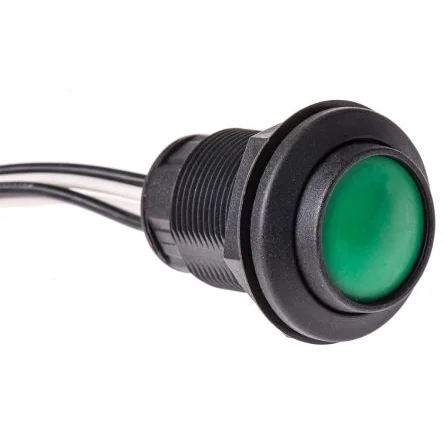 IP67 Fully Sealed Pushbutton Switches. Fully back sealed SPNO contacts rated at 6A 250Vac resistive Supplied with 0.5m flying leads Dimensions: Depth behind panel: 46mm, max. panel thickness 22mm, panel cut-out 30.5mm