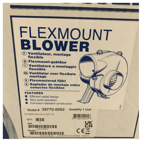 The blower is made from robust materials that are resistant to the marine environment, such as moisture, salt, and vibrations. The flexible mounting options make installation easy, even in tight spaces. This model is an essential component for safety on board, particularly for preventing the buildup of potentially explosive gases in the engine room.