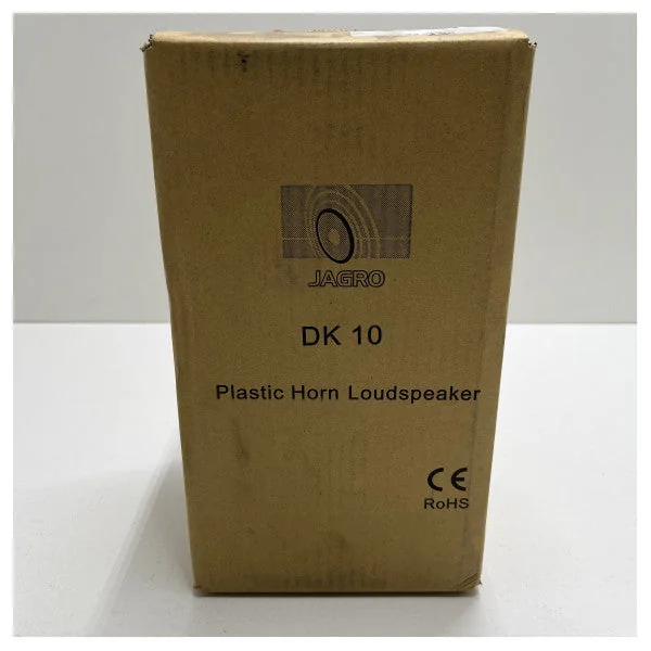 Jagro Horn Speaker 100V white DK10-PP Product description: The Jagro Horn Speaker 100V white DK10-PP is a powerful and compact speaker that is perfect for a wide range of applications, such as public address systems, background music, and paging. The speaker features a white housing and a horn-shaped design that ensures even sound distribution. Features: Powerful 10 Watt speaker 100V transformer for use with public address systems Horn-shaped design for even sound distribution White housing for a sleek appearance Compact and lightweight for easy installation Specifications: Power: 10 Watt Impedance: 8 Ohm Frequency range: 250 Hz - 6 kHz Sound pressure level: 102 dB Transformer: 100V Housing material: ABS Housing colour: White Dimensions: 230 x 180 x 120 mm Weight: 1.2 kg Applications: Public address systems Background music Paging Notifications Safety announcements