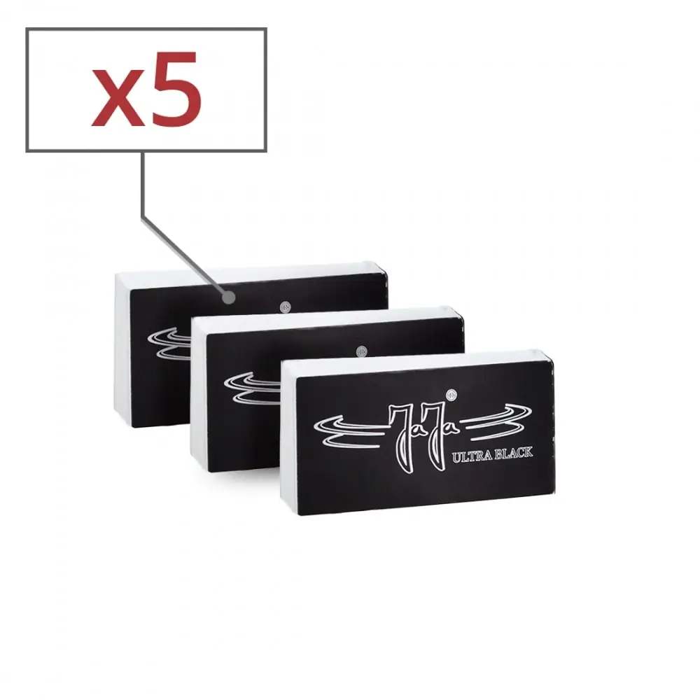 jaja ultra black cardboard filters x 5. 5 jaja cardboard filter books (leading brand in holland for filters and rolling papers) each containing 31 boxes or tips. of good quality and at a low price the filters of the jaja brand which is pronounced "yaya" in the netherlands can only bring you complete satisfaction. as its slogan says: "jaja paper we know that you want". ideal for rolling with short sheets. not perforated so you can choose how to roll it in "o" or "w". thickness: 170 gsm. easy to take from the package since only glued on one end. filters made in the netherlands.