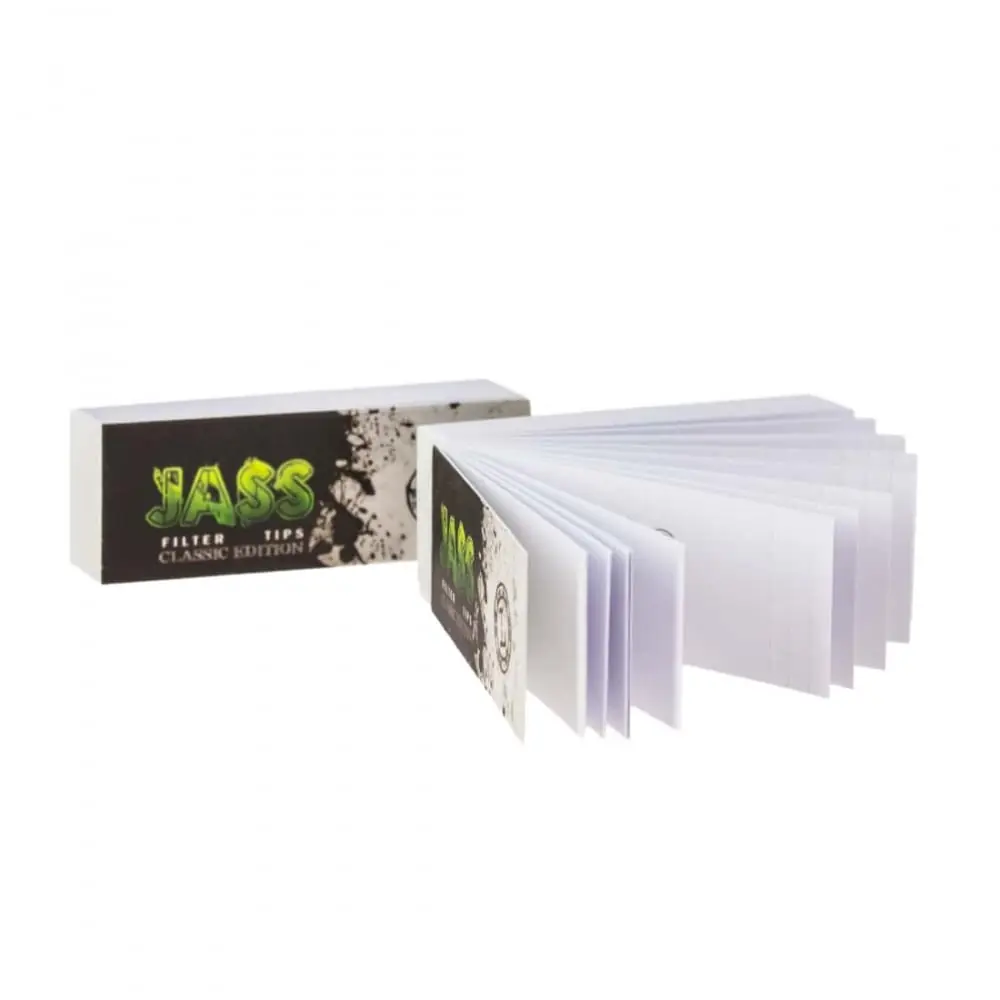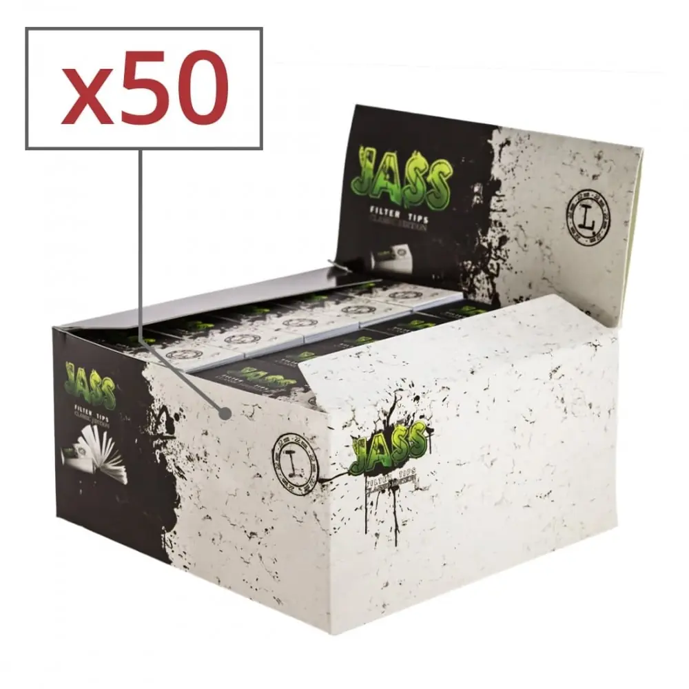 cardboard filters jass large x 50. a cardboard filter with an urban design and wider than the normal cardboard filter. perforated it helps you roll with the w which prevents small bits of tobacco from being sucked up. wider it allows you not to burn your lips towards the end of the cigarette.