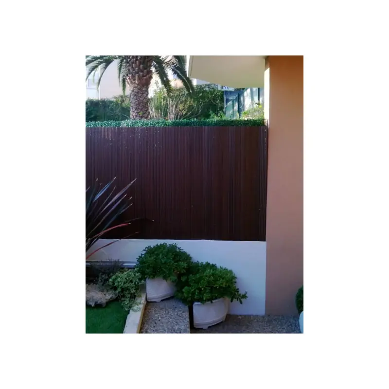 ThisCanisse Jet7Garden will be ideal for protecting you from prying eyes, defining your property, and enhancing your outdoor space. Easy to install, it can be fixed to fences, basic enclosures, and any other support. Its coating is also solid, stable, resistant, and durable over time. Indeed, the PVC material withstands the elements and UV rays, completely shielding you from neighbours or passers-by. While it provides privacy, it still allows light to pass through. This double-sided privacy screen will therefore be perfect for preserving your privacy and shielding you from view while adding a friendly and aesthetic decoration to your terraces, gardens, or balconies. The dark walnut wood effect brings a natural ambiance.