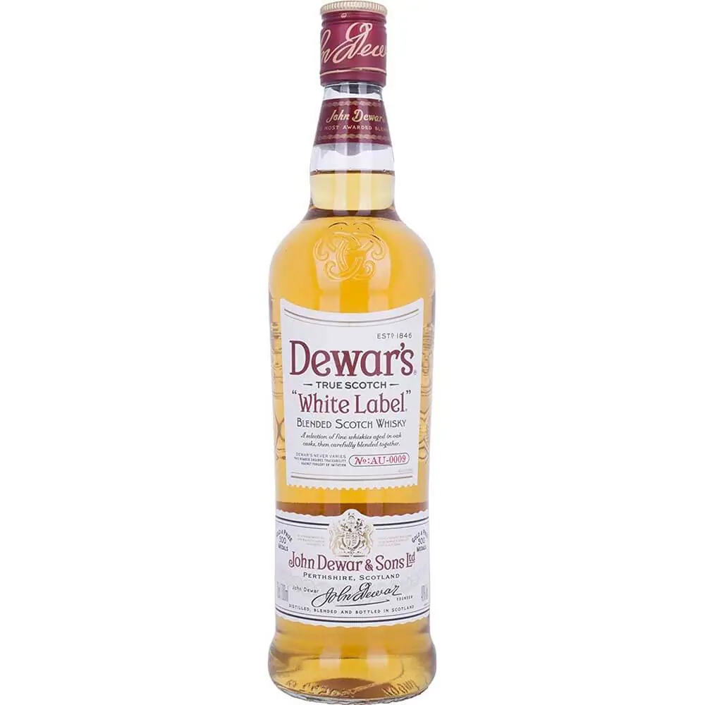 Dewar's White Label is a blended Scotch whisky produced by John Dewar & Sons, a distillery founded in 1846 in Perth, Scotland. The whisky is made from a blend of over 40 single malt and grain whiskies, all of which are aged for a minimum of five years. The blend is then married in oak casks for a minimum of six months before bottling.