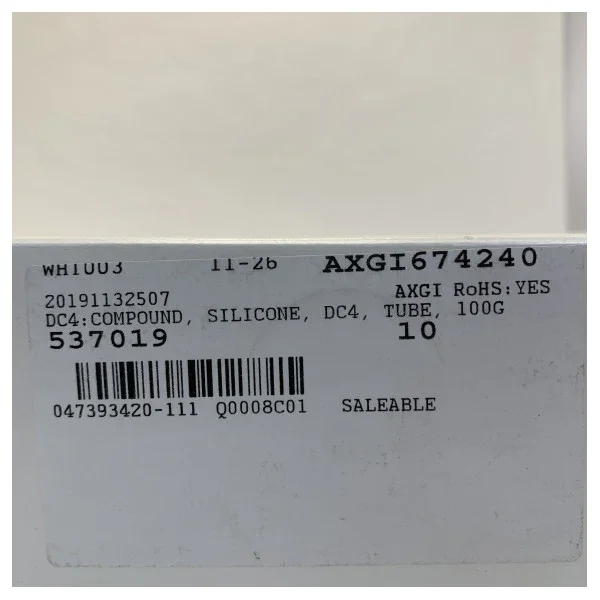 The Dow Corning DC4 Electrical Insulating Compound is a silicone grease with an excellent temperature range. The compound is optimized for an operating temperature range of approximately -55 degrees Celsius to +200 degrees Celsius. The product has a dielectric strength of at least 500 volts per mil (approximately 20 kilovolts per millimeter), confirming its high insulation value. The specific gravity of the compound is typically around 1.00 g/cm³. It is a non-melting, non-curing paste with a consistency typically described as a thick, smooth paste (similar to an NLGI class 2 or 3). The product is available in a standard tube or can of various sizes (for example, 150 gram tube or 3.6 kilogram can).