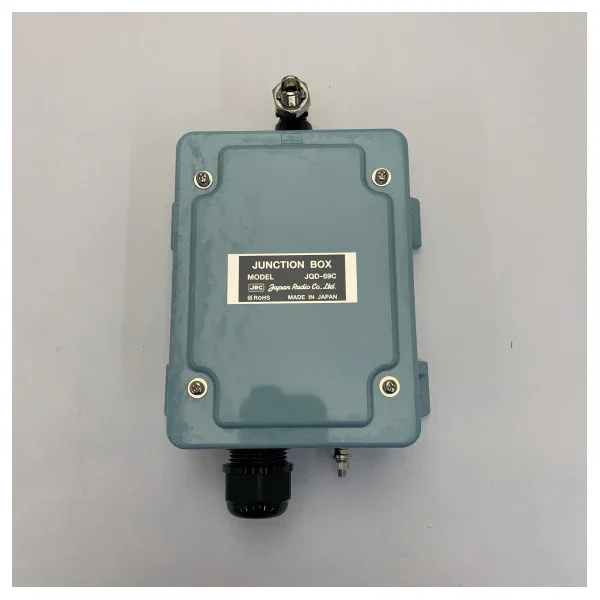 The JRC JQD-69C functions as the MF/HF DSC Junction Box and is specifically intended for use with the NAW-60 antenna. This device manages the signal connection and impedance matching between the MF/HF communication set and the antenna. It is designed to operate within the maritime MF/HF frequency range. The JQD-69C is an original JRC (Japan Radio Co., Ltd.) product, ensuring quality and compatibility. Its compact and sealed design provides a protection level suitable for a maritime environment (the exact IP classification depends on the installation).