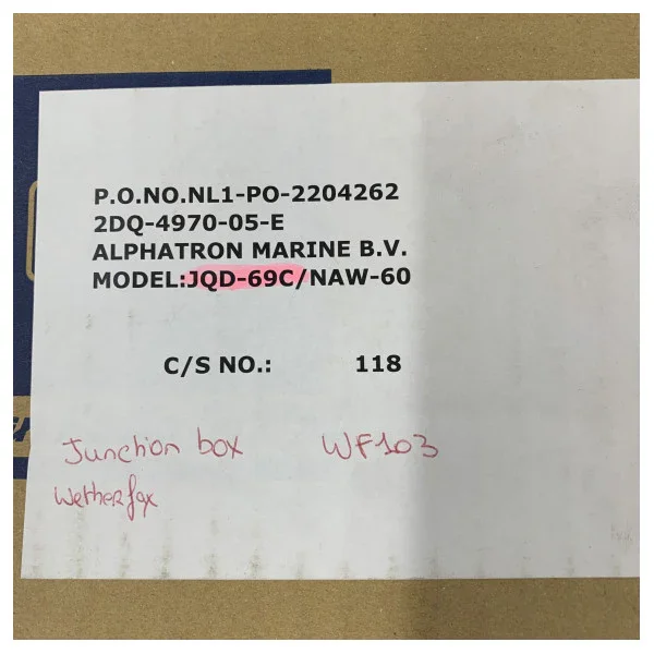 The JRC JQD-69C MF/HF DSC Junction Box is an essential component for your maritime communication system, specifically designed for seamless integration with the NAW-60 antenna. This junction box, crucial for the MF/HF Digital Selective Calling (DSC) functionality, ensures a safe and reliable connection between the communication equipment and the antenna. It is built to withstand the harsh conditions at sea and guarantees uninterrupted signal transmission for your vital communication. The JQD-69C plays a key role in GMDSS (Global Maritime Distress and Safety System) compliance by optimizing the performance of your DSC system.