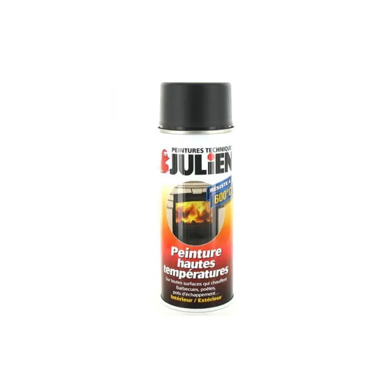 The Julien high temperature black aerosol paint restores or decorates any object or surface exposed to heat (but not directly to flames): barbecues, stoves, exhaust pipes (except catalytic), fire grates, spotlights. Resistant up to 600°, the Julien high temperature aerosol paint can be used indoors as well as outdoors.