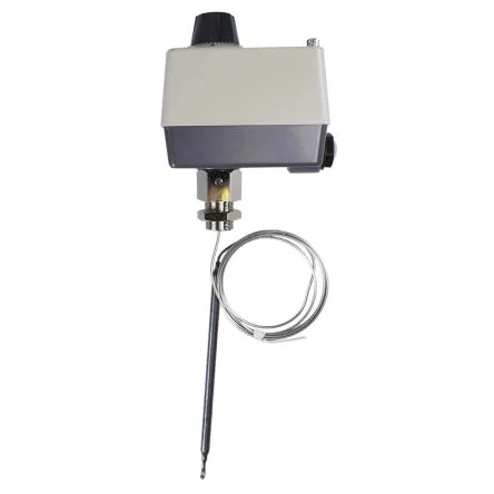 Reliable Jumo capillary thermostat for precise temperature control up to 500°C.