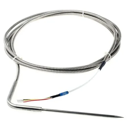 Pt100 straight or angled fixing probes. Temperature probes with 1 or 2 Pt100, class B, 3-wire. 316 stainless steel straight or angled handle. 3 m PTFE connection cable.