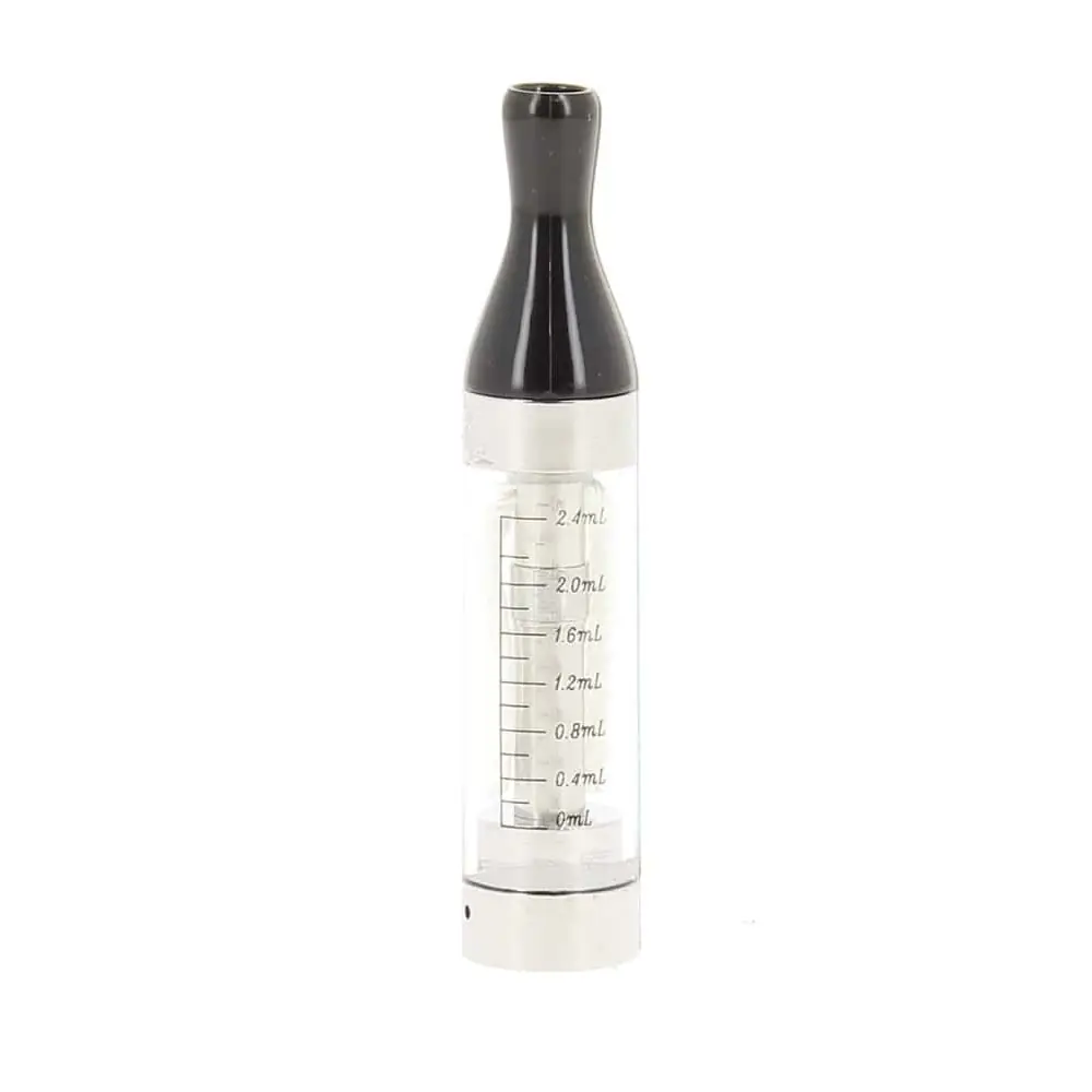the transparent kanger t2 clearomiser with a large capacity tank of 2.4ml is equipped with a system of long wicks with which you can vape longer than with a classic clearomiser.