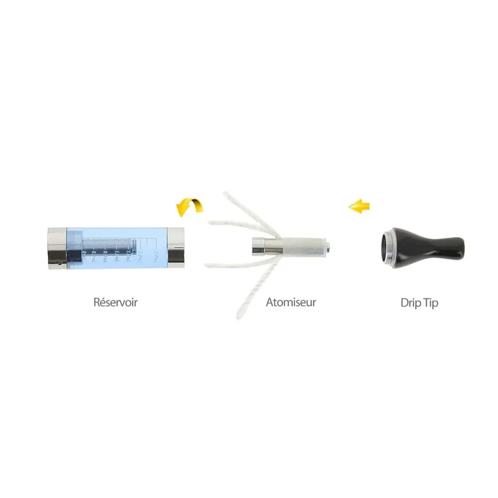 - then replace the tip (drip tip or mouthpiece) of your e-cigarette checking that your long wicks are firmly screwed to the central tube.