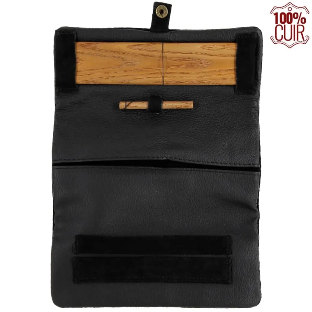 Stylish leather tobacco pouch with multiple pockets for organized storage.