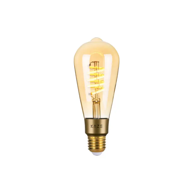 KAZE presents NI, a smart bulb from the TORIO range, ultra-modern with vintage looks; you will appreciate its slim and elongated shape. The amber-tinted glass globe reveals the LED filament beautifully arranged in a spiral, and the bronze-coloured screw base adds undeniable character to this bulb. Equipped with smart technology, the management of your energy consumption is ensured. Moreover, your NI bulb which means two in Japanese is dimmable and easily varies from warm white to cool white. All KAZE products are made with the utmost care and offer the possibility to control the lighting remotely via theKaze Light app (available for Android or iOS). Also smart, the Ni bulb is compatible with Google Home and Amazon's Alexa via your Wi-Fi; once paired, you control the lighting with your voice.