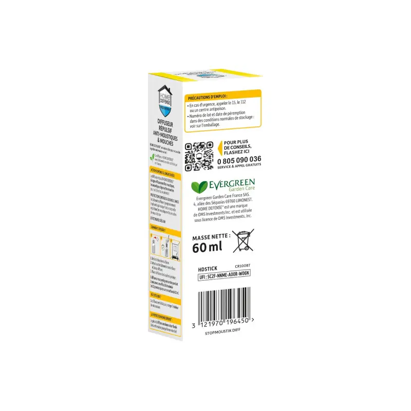 TheHOME DEFENSE mosquito and fly repellent stick diffuser - 60ml will be your best ally in the fight against mosquitoes and flies. This diffuser with rattan sticks is based on geraniol, allowing for continuous diffusion to provide you with protection for 1 month over an area of 12 m². Thanks to its floral scent, this product will make your interior more pleasant. Once the dispenser is filled, you won't have to do anything else. The repellent will do its job on its own to make your life easier.