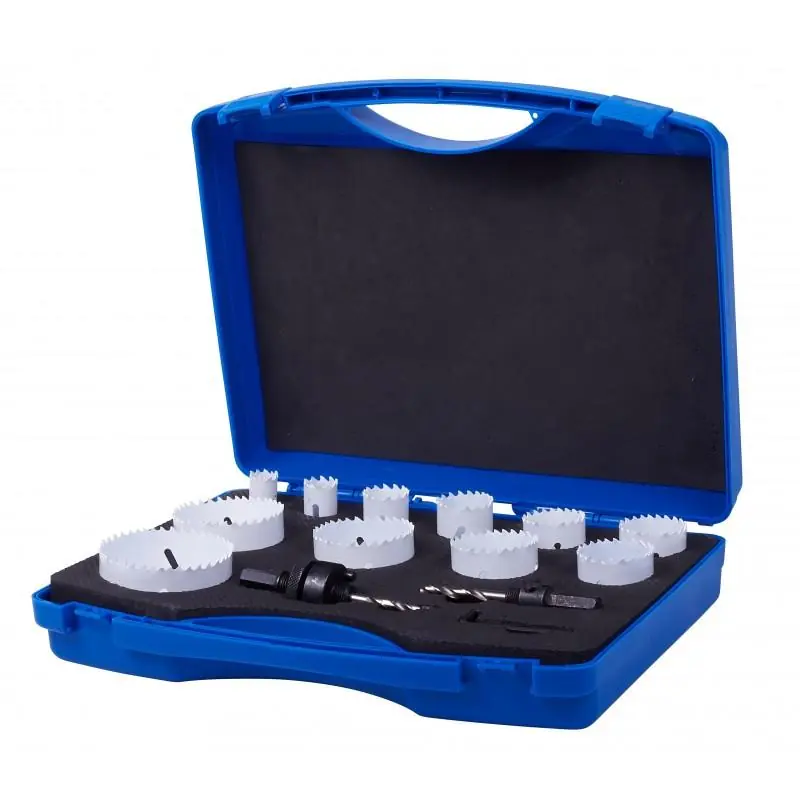 - Hole Saw Sizes: The set includes hole saws with diameters of 19 mm, 22 mm, 29 mm, 35 mm, 38 mm, 40 mm, 44 mm, 51 mm, 60 mm, 67 mm, and 76 mm.