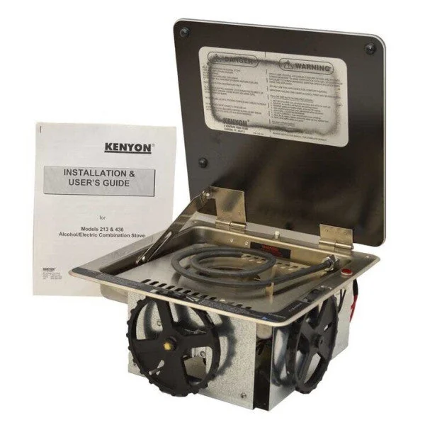 Kenyon Electric's B61045 Alcohol Stove Single Burner is a powerful and convenient 230V burner. It is the perfect way to generate heat for cooking meals, heating water, or making coffee when there is no electrical power. Thanks to the safe and rapid heating using non-explosive denatured alcohol, this cooking appliance offers great flexibility in cooking. The advanced foam insulation prevents excessive heat loss and is easy to clean. This burner design is safe, dry, and suitable for both large and small use. The B61045 is an ideal choice for camper and boat users who want to save space and cook on the go.