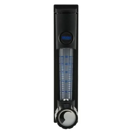 Accurate variable area flow meter for gas, measuring 4 to 50 L/min with durable polycarbonate construction.