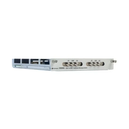 The Keysight 34946A microwave switch for the 34980A Multifunction Switch/Measure Unit offers bi-directional switching for test signals from DC to 26.5 GHz. These switches provide excellent insertion loss, isolation, and VSWR specification. The microwave switches are configured as two independent 1x2 (SPDT) terminated switches on a single module. For general-purpose microwave switching applications, the module can be used to switch separate signal sources for a multi-band receiver/transmitter testing application.Two SPDT terminated switches 4 GHz , 20 GHz or 26.6 GHz options High isolation, low VSWR Up to 50W switching SMA connectors External switch mounting option