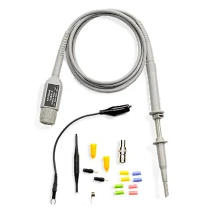 High-performance oscilloscope probe with 50MHz bandwidth and 10:1 attenuation for precise voltage measurements.