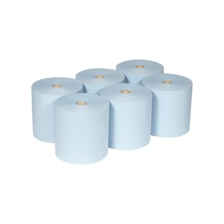 High-capacity blue paper towels designed for maximum absorbency and efficiency in high-traffic areas.