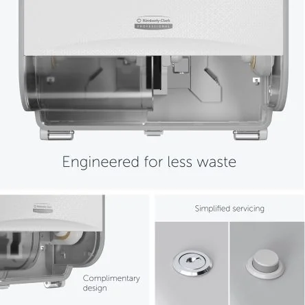 Efficiently dispense toilet rolls with this durable white plastic dispenser from Kimberly Clark.