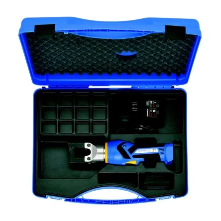 Klauke EK354ML Mini Crimp Tool Kits EU and UK. The Klauke EK354ML battery powered crimp tool has a one button operation for the control of all its functions. This ergonomic lightweight and powerful crimp tool makes it perfect for applications with high volume crimping. The crimp tool has a large cross section range up to 150mm2. It has a slim closed flip top head which is rotatable. Making it ideal for crimping in space critical areas. Its powerful 10.8 V Lithium Ion battery and quick charge times makes the EK354ML tool a must for any busy engineerTwo kits are available please see part numbers ; 908-2922 908-2922 EU kit - ; 908-2925 908-2925 - UK kit Each kit includes 1x EK354ML crimp tool 1x RAML1 10.8v Li-ion battery 1.5 Ah 1x EU or UK charger 1x Full die set 6 mm² to 150 mm² 1x Carry case