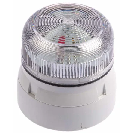 Klaxon BeaconThe Klaxon DC clear lens beacon with xenon flash tubes is fitted with a diffuser for greater visibility and spread of light. It has a low profile design and is constructed of high-quality polycarbonate. This waterproof flash guard includes a terminal block and a 27mm deep base supplied with a seal and grommet. It is an ideal visual indicator for a security alert, emergency warning and general signalling.Features and BenefitsThe supply voltage is 12VDC/24VDC Xenon light blubs Ease of installation with first-fix option on standard models Compact, ultra-modern sleek appearance White in colour Vandal-resistant safety locking mechanism Operating temperature is between -20°C and 40°CCertificationsIP67 rated