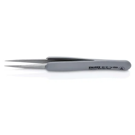 Knipex 130 mm, Stainless Steel, Fine, Straight, ESD Tweezers - 92 21 14 ESD