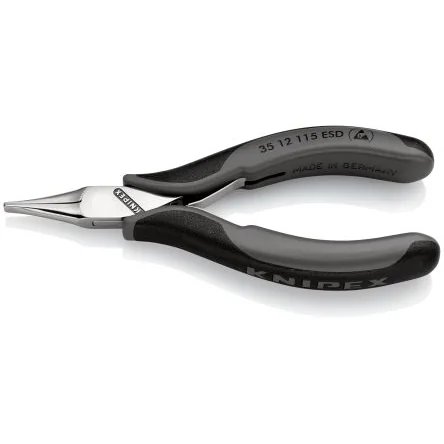 Knipex 35 12 Electronics Pliers, Flat Nose Pliers, 115 mm Overall, Flat, Straight Tip, 22,5mm Jaw, ESD - 35 12 115 ESD