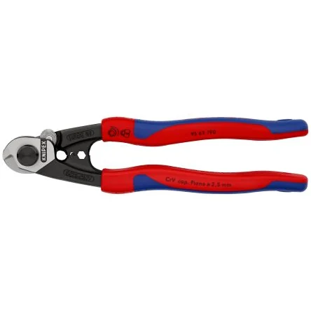 Effortlessly cut steel wire with Knipex's durable 190mm wire rope cutters.