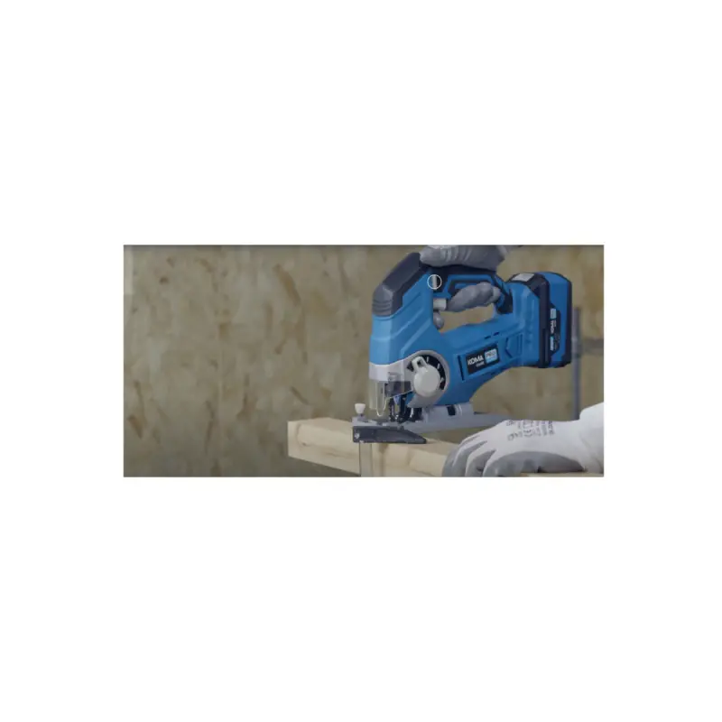 TheKOMA 20V jigsaw - without battery or charger - 08754 can be used to saw wood and metal. It has a maximum cutting depth of 65 mm for wood and 8 mm for metal. An LED light is located at the front of the tool to ensure a precise cut even in areas where lighting is not optimal. The grip is designed to be optimal thanks to an ergonomic anti-vibration handle.