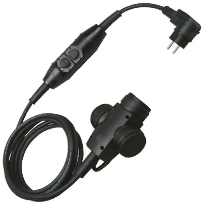 PRCD-S Safety Switch, Solid Rubber Angle Plug and 3x Solid Rubber Coupling with Cover. PRCD-S safety switch with solid rubber angled plug and two earthing contact systems, as well as a triple solid rubber coupling with cover. IP44. The product is supplied in a robust protective case. For technical specifications, see PRCD safety switch. Overall length approx. 315 cm.