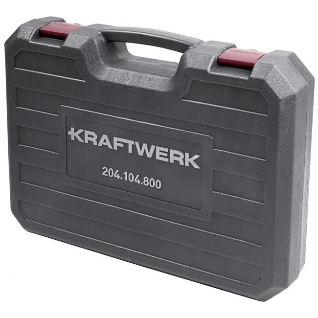 The Kraftwerk Basic Line Socket Set (MPN: 204.104.800) is a comprehensive 200-piece toolkit designed for a wide range of mechanical and maintenance tasks. This set includes sockets, ratchets, extensions, and bits in 1/4", 3/8", and 1/2" drive sizes, all housed in a robust plastic case for easy storage and transport.