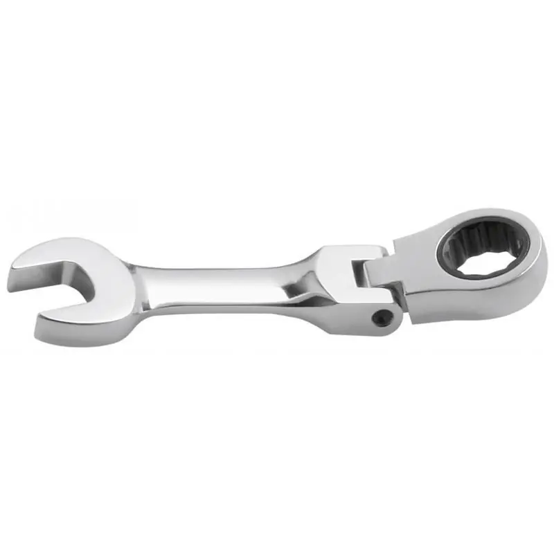- Dual Functionality: One side features a 15° angled open-end wrench, while the other side has a ratchet ring spanner.