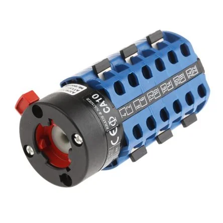 Series CA10. Each switch body is supplied with the appropriate legend plate but the switch operator must be ordered separately (see stock no. 350-0840 typically). Rated at 20A S0 size (48x48mm)